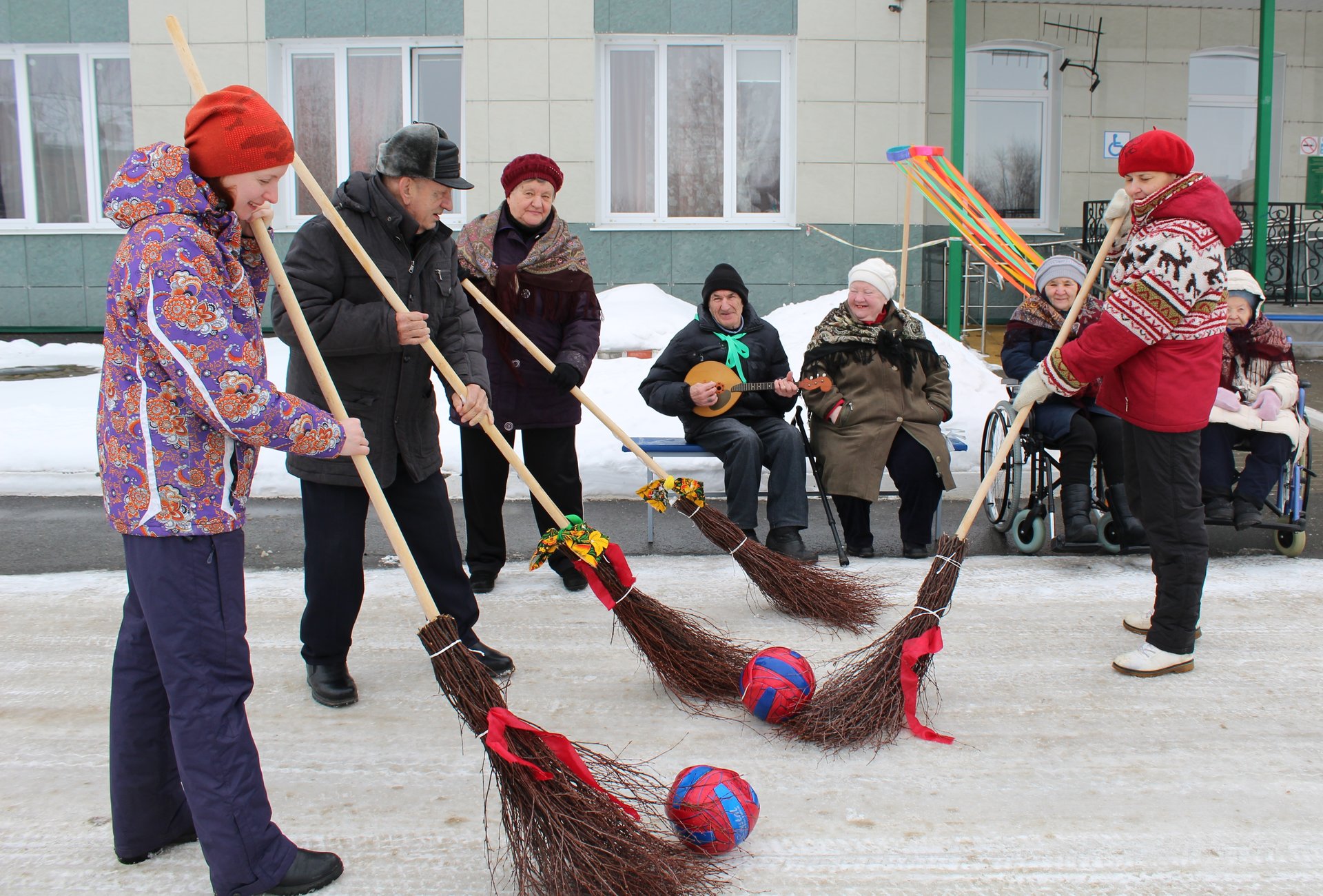 Проживающие поиграли в необычный футбол с метлами, показали свое