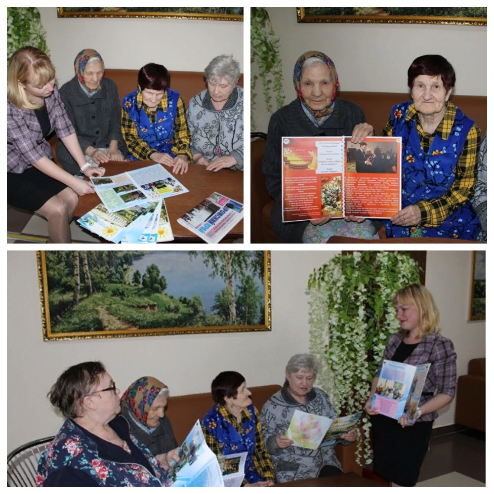 11 марта 2020 года получатели социальных услуг Пансионата г.Мурома совершили путешествие по страницам нового выпуска журнала «Дом, в котором мы живём». Библиотекарь познакомила присутствующих со структурой журнала, рассказала об истории его создания, об авторах статей и художественных материалов. Листая новый номер, участники презентации имели возможность оглянуться назад и вспомнить недавние яркие события из жизни учреждения, поговорить о настоящем и помечтать о будущем. Журнал всегда дает свежую информацию и пищу для ума. В первом номере 2020 года представлена новая рубрика «75-летию Победы посвящается», где будут размещены рассказы о ветеранах и о событиях из их жизни.
