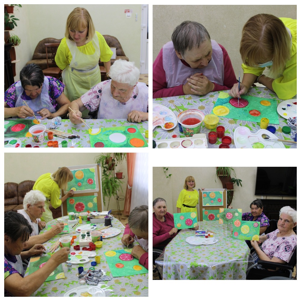 Сегодня медики советуют: чтобы сохранить активность мозга, надо – рисовать! К такому профессиональному совету прислушиваются в Пансионате г.Мурома. Поэтому 22 июля 2020г. получатели социальных услуг приняли участие в мастер-классе по рисованию гуашью «Цитрусовый микс». Начинающие художники обогатили себя новыми впечатлениями и эмоциями, реализовали свои творческие потребности и зарядились сочной яркой цитрусовой энергией. Участники мастер-класса с пользой для себя провели время и дали рекомендации другим: «Берите, люди, в руки карандаши, кисти, краски и рисуйте в своё удовольствие! Это нужно, можно и никогда не поздно!»