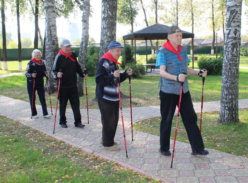 В тёплый солнечный день 11 сентября 2019 года получатели социальных услуг Пансионата г. Мурома провели спортивное занятие среди вековых лип и белоствольных берез парка им. Ю.А.Гагарина. С целью популяризации здорового образа жизни людей старшего возраста, любителям спорта был представлен мастер-класс по скандинавской ходьбе. Освоенная техника была с успехом опробована на дорожках тенистого парка. Не обошли стороной участники поездки уличные тренажеры, позволяющие снять мышечное напряжение, добавить бодрости и сил.
