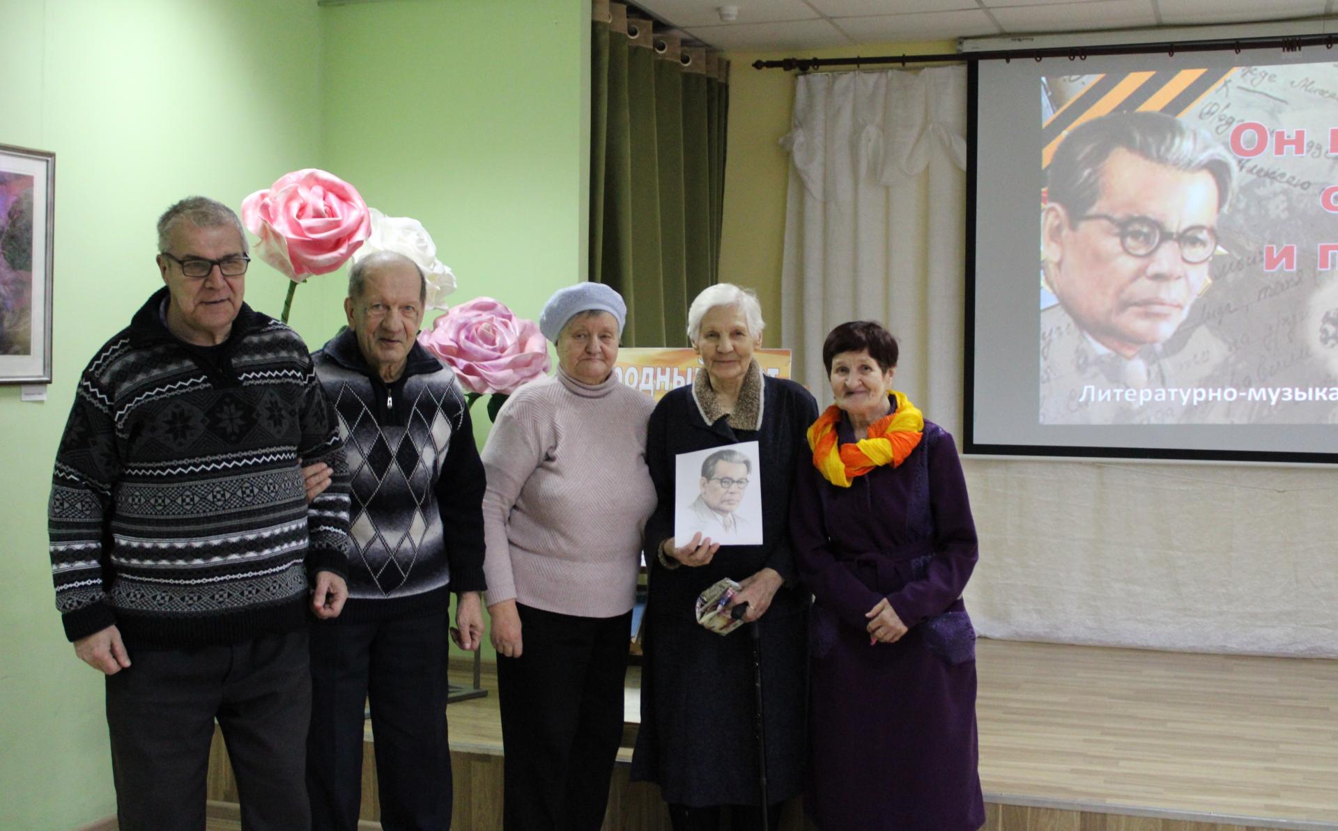 28 февраля 2020 года в ходе месячника посвящённого Дню защитника Отечества, проживающие Пансионата г. Мурома посетили клуб «Сударушка» филиала № 8 ЦБС. В теплой и дружеской обстановке получатели социальных услуг узнали много нового о поэте Михаиле Васильевиче Исаковском. Зрителей порадовали песни, сложенные на стихи русского стихотворца, а знаменитая песня «Катюша» не оставила никого равнодушными, все подпевали и аплодировали. Гостеприимная обстановка, именно то, что нужно для поднятия настроение в ненастный зимний денек.