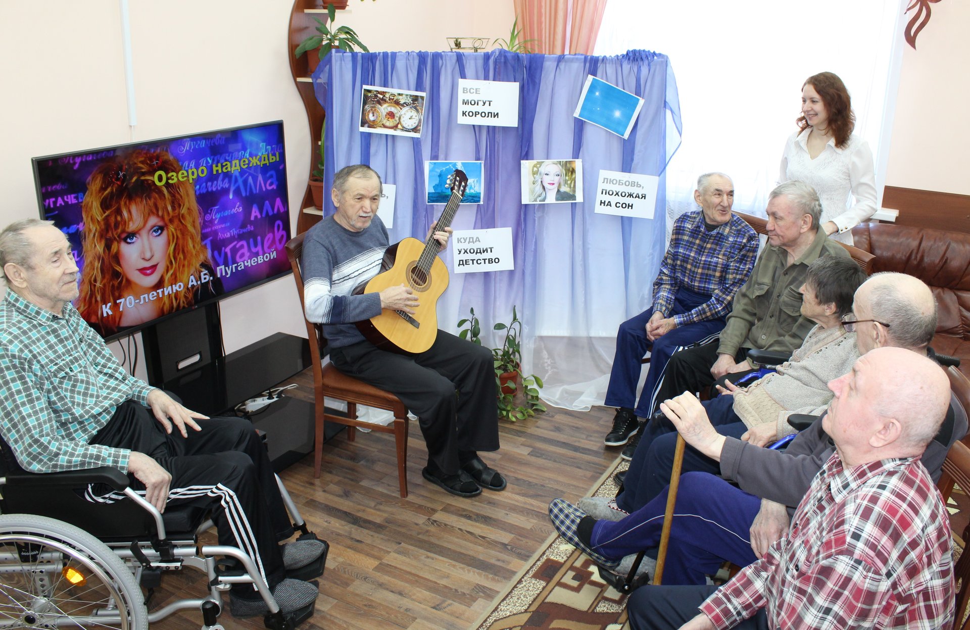 15 апреля 2019 года в Пансионате прошло музыкальное мероприятие с использованием арт-терапии «Озеро надежды», приуроченное к 70-летию примадонны российской эстрады А.Б.Пугачевой. Не секрет, ее творчество всегда помогало слушателям увереннее смотреть в будущее, что и послужило идеей для организации психологического занятия. Поклонники творчества Аллы Борисовны узнали ранее неизвестные факты из ее биографии, с удовольствием отвечали на вопросы музыкальной викторины, а наиболее популярные песни спели все вместе под гитару. Великолепный голос и любимые композиции молодости положительно повлияли на настроение участников мероприятия. С песней по жизни шагать веселее!