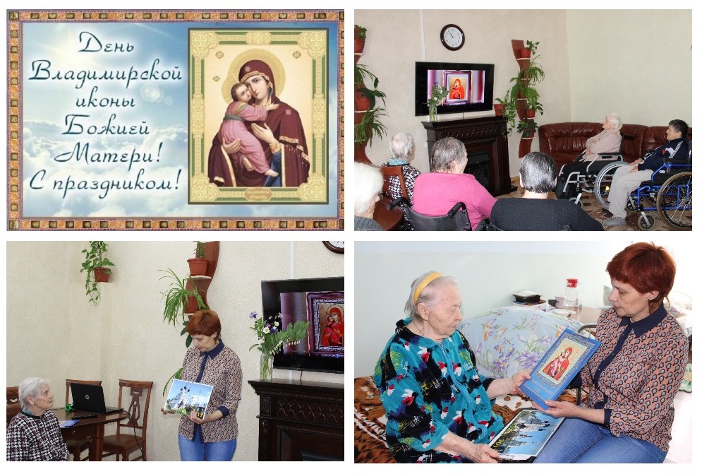 3 июня 2020 года в день празднования и почитания иконы Божией Матери «Владимирская» в Пансионате г.Мурома проведен час православия, посвящённый этому празднику. Получатели социальных услуг посмотрели фильм об истории этой иконы, узнали интересные факты о трогательной композиции, несущей глубокую богословскую идею: Богородица, ласкающая Сына, предстает как символ души, находящейся в близком общении с Богом.