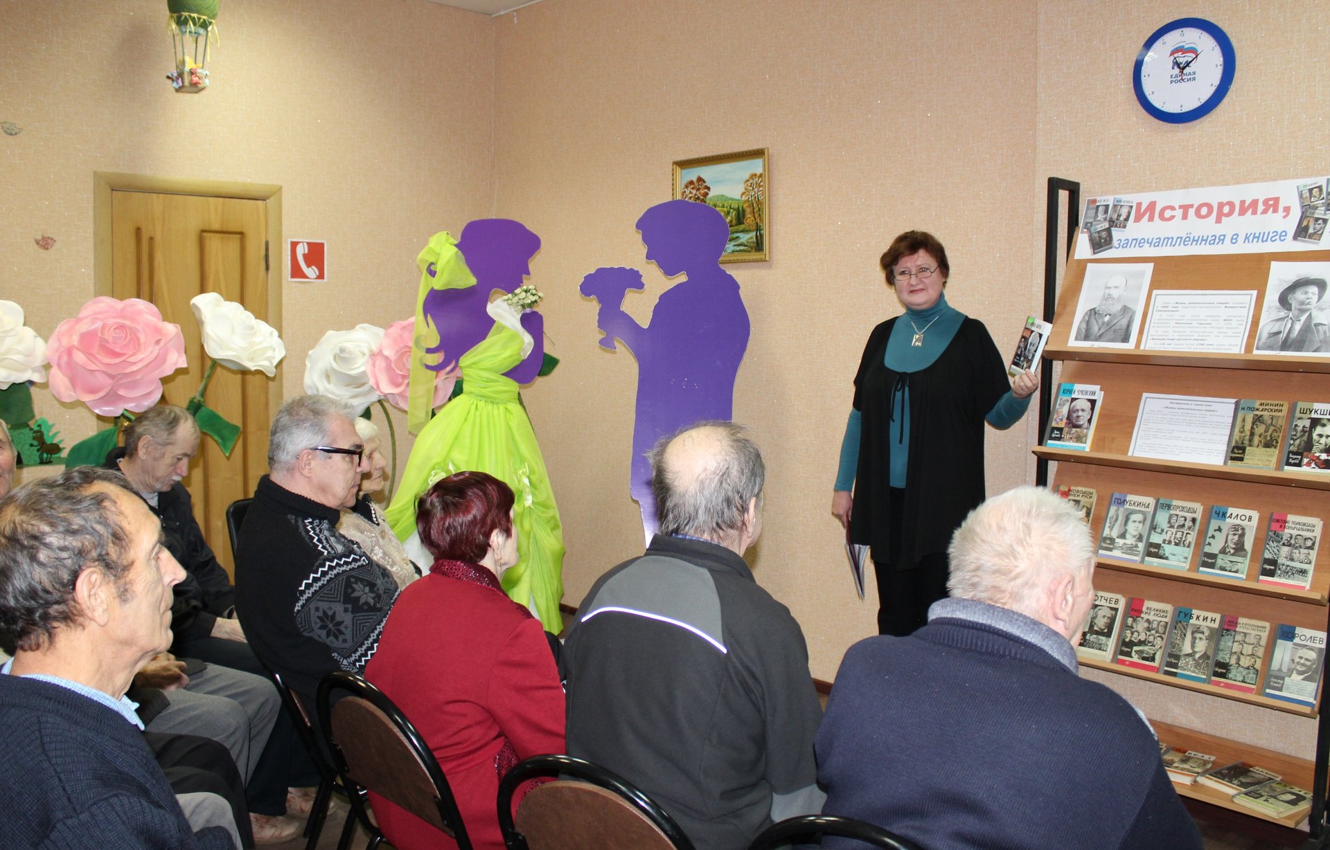 6 ноября 2019 года в преддверии Дня согласия и примирения получатели социальных услуг Пансионата г. Мурома посетили выставку «История, запечатлённая в книге…», из серии «Жизнь замечательных людей», открывшуюся в МБУК «Центральная библиотека». В читальном зале участники мероприятия познакомились с уникальными изданиями, известными во всём мире, героями которых являлись представители самых разных эпох России. Любителям чтения была предложена занимательная викторина, литературные загадки и выразительное чтение стихов. Выставка расширила кругозор читателей и позволила лучше ориентироваться в выборе интересных книг.