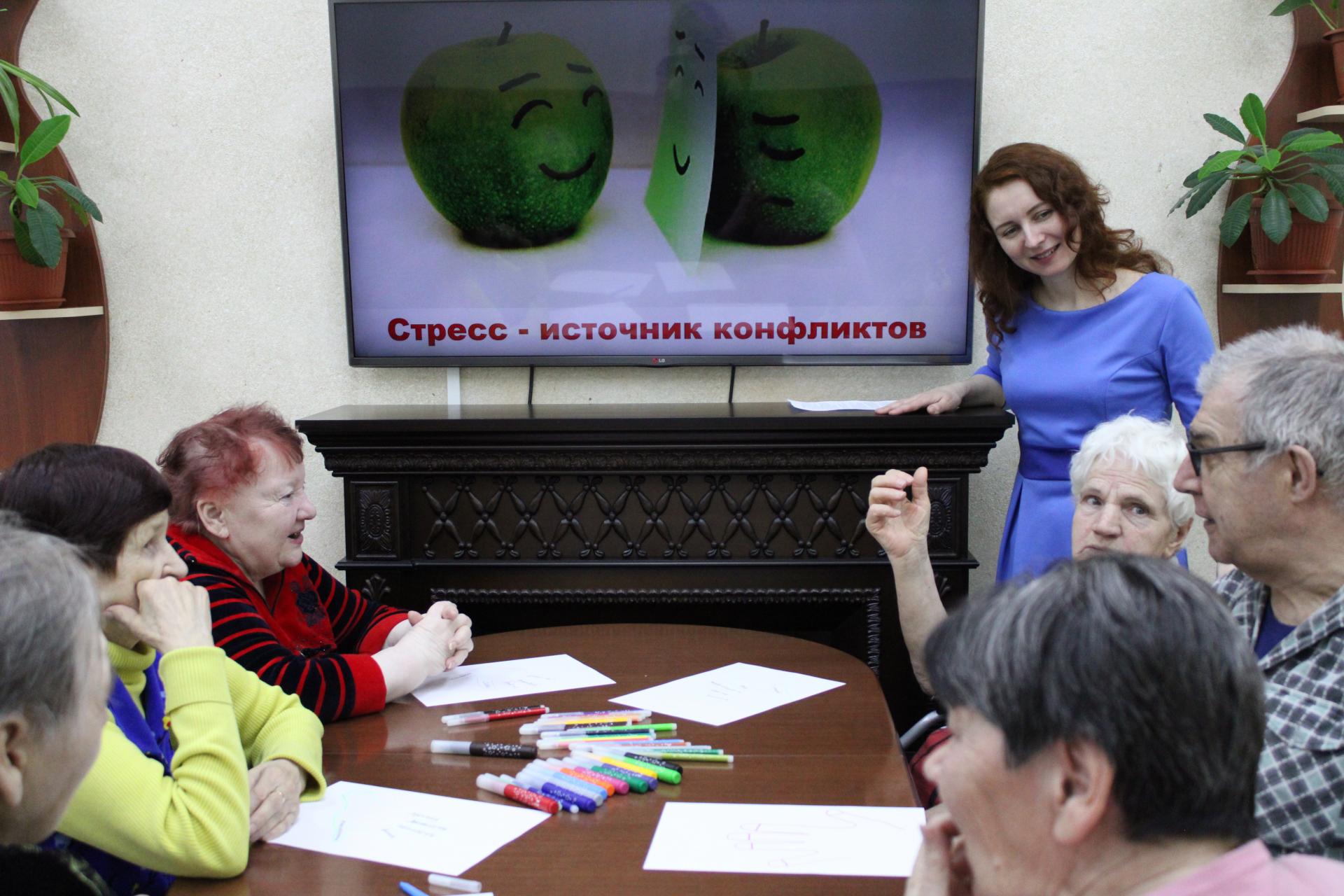 2 марта 2020 года в Пансионате г. Мурома в рамках социально-психологической программы «Мир позитива» состоялся психологический практикум «Стресс – источник конфликтов» для профилактики и коррекции последствий стрессовых ситуаций. Получатели социальных услуг узнали о причинах возникновения стресса, стадиях его развития, а также о положительных и отрицательных его последствиях для здоровья человека. Участники мероприятия не только поделились собственными переживаниями и методами избавления от стресса, но и узнали много новых техник, способствующих предотвращению появления этого состояния и более быстрому выходу из него.