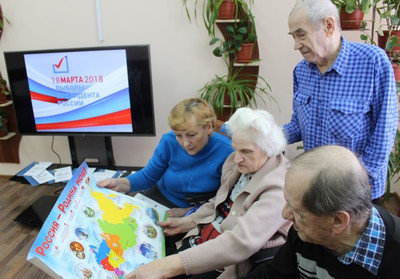 13 марта 2018 года в Пансионате состоялась беседа-диалог «Я отдаю свой голос». В ходе встречи получатели социальных услуг посмотрели видеоролик о порядке проведения выборов, прослушали информацию о предвыборных программах кандидатов в Президенты Российской Федерации, получили в подарок информационные буклеты «Голосование в вопросах и ответах». В ходе встречи прозвучало всеобщее мнение о долге каждого гражданина участвовать в выборах.